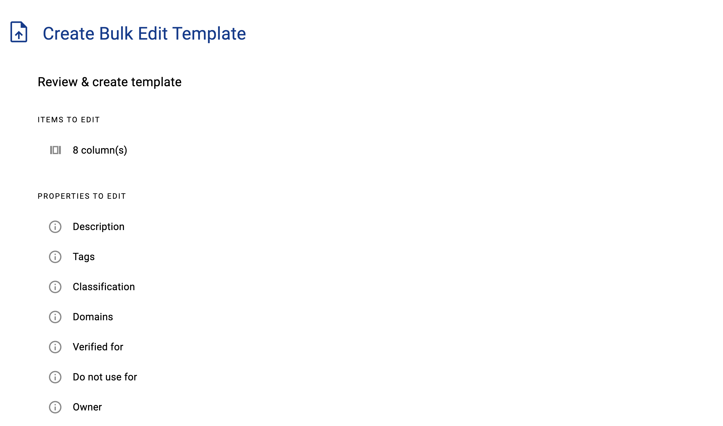 Step 1) Add Data Assets to your Bulk Edit Excel template