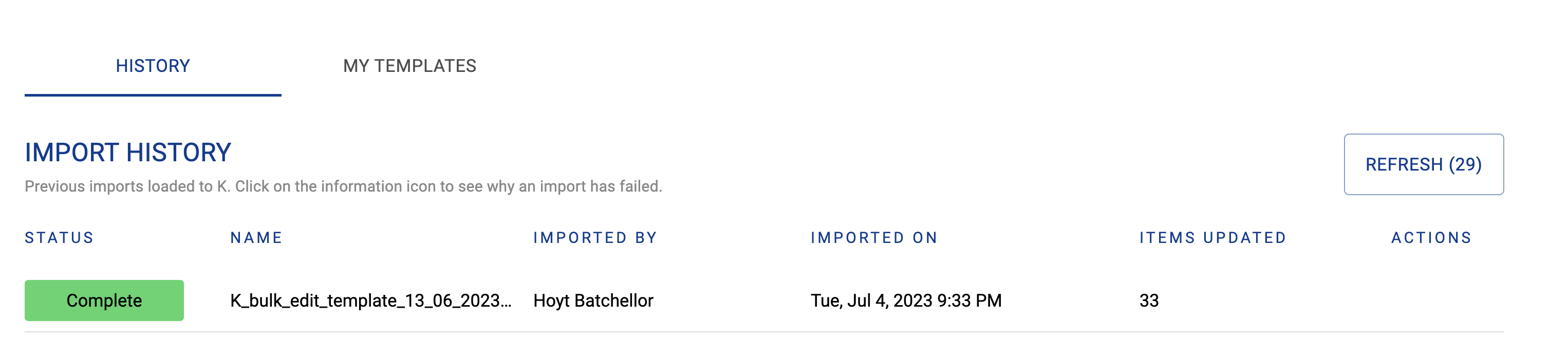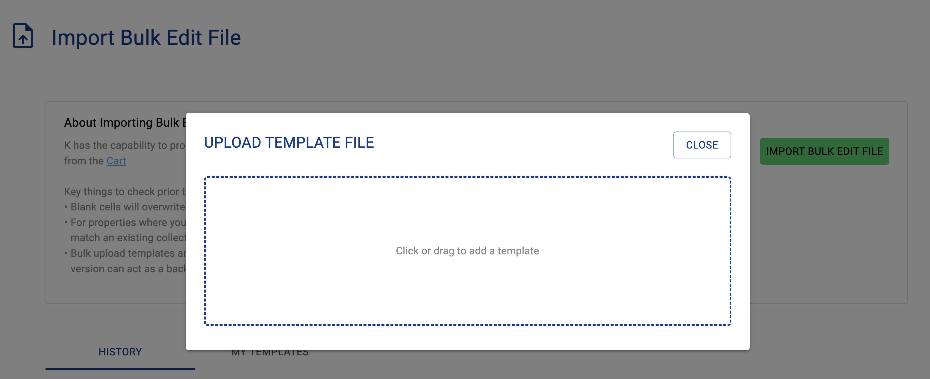 Go to Import Bulk Edit File page via K applications