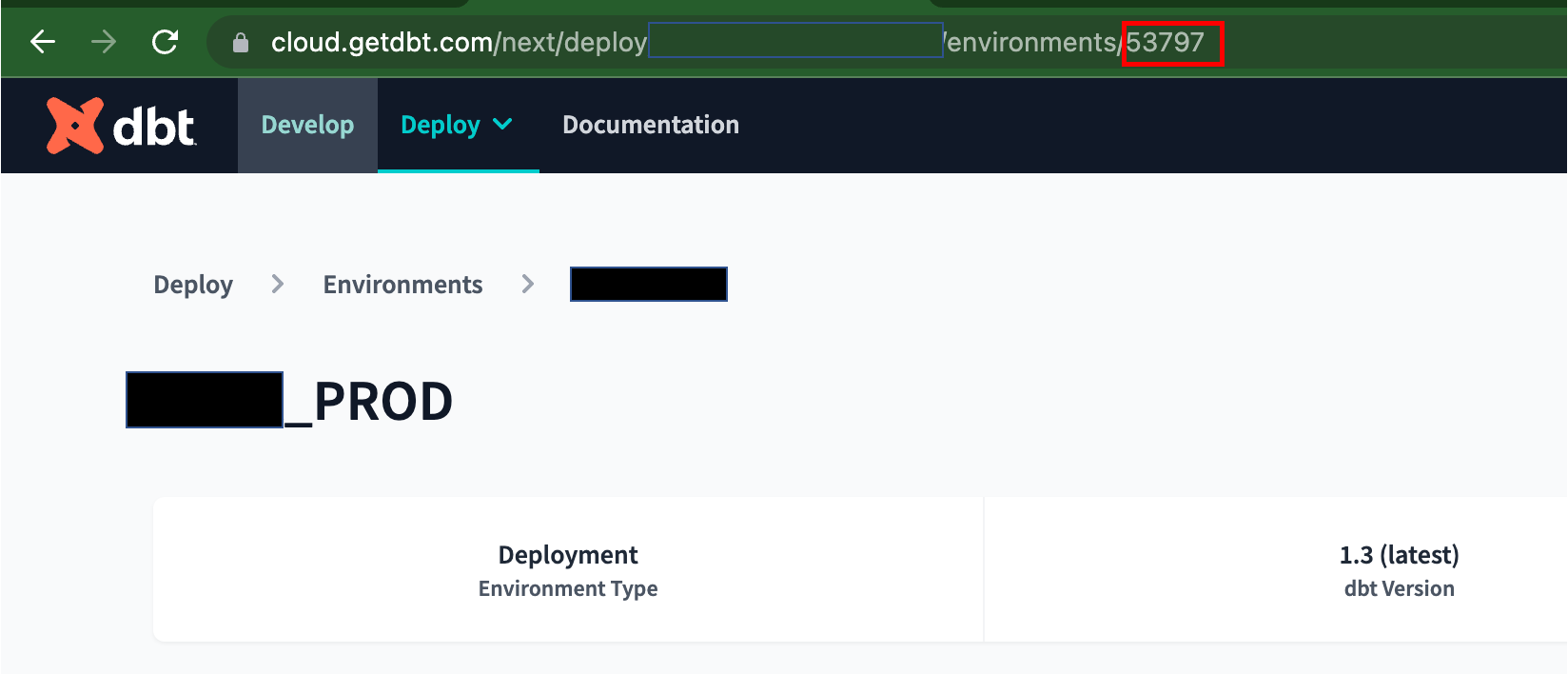 cloud.getdbt.com.[account id]Account ID: You can find your Account ID in the URL when you log into your dbt cloud console. e.g. https://cloud.getdbt.com/#/accounts/ [account ID]/projects/[project ID]/dashboard/