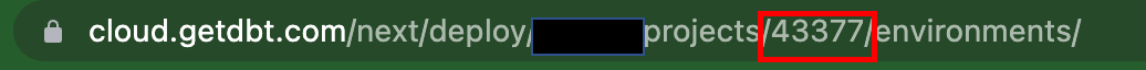 NOTE: You can find the ID by going to the Project page in your DBT cloud account and looking at the URL