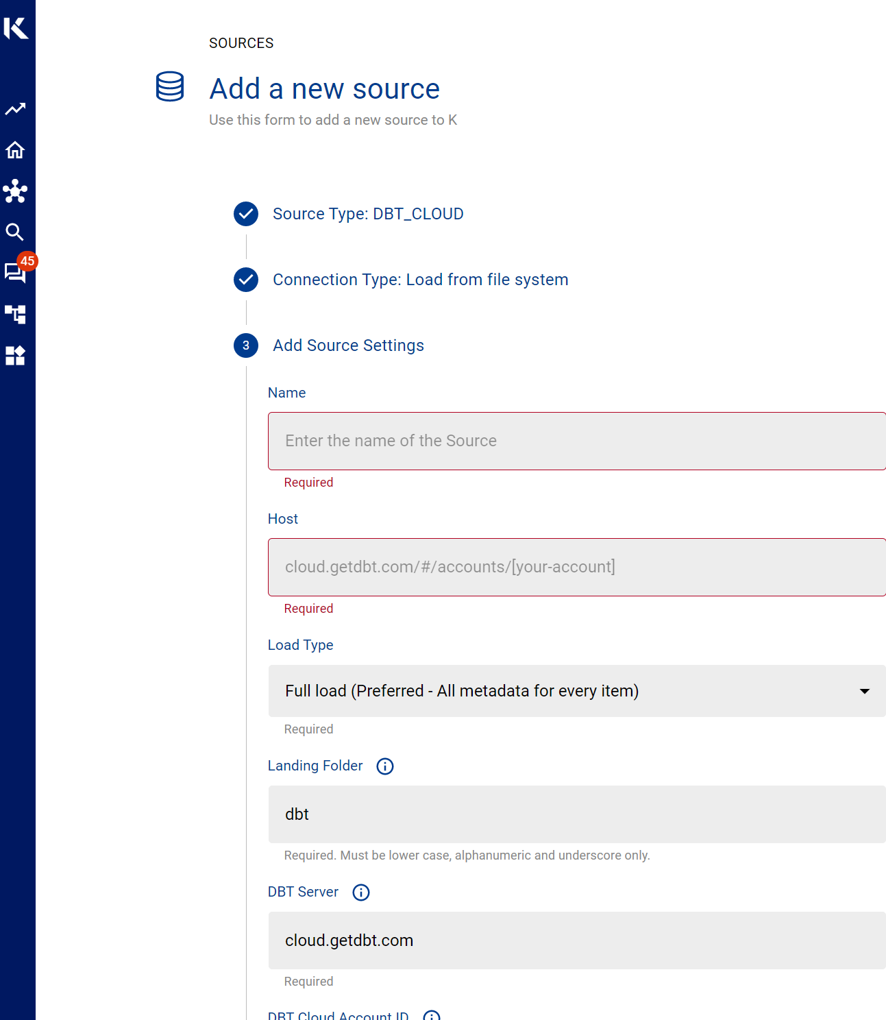 Create an DBT Cloud source in K