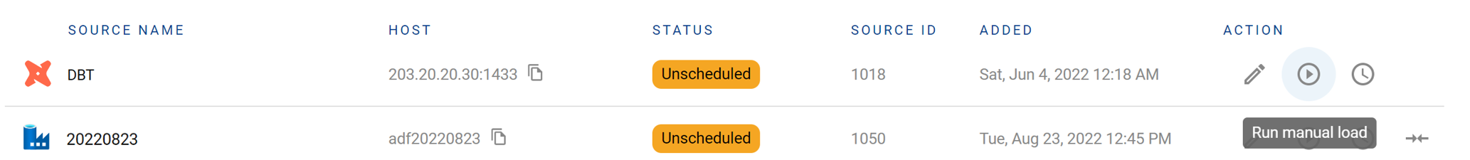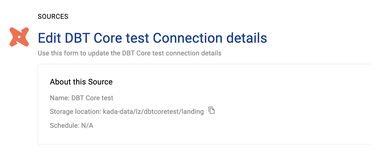 Locate your new dbt core Source and click on the Schedule Settings (clock) icon to set the schedule