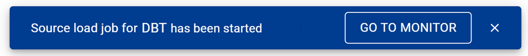 After the source load is triggered, a pop up bar will appear taking you to the Monitor tab in the Batch Manager page. This is the usual page you visit to view the progress of source loads
