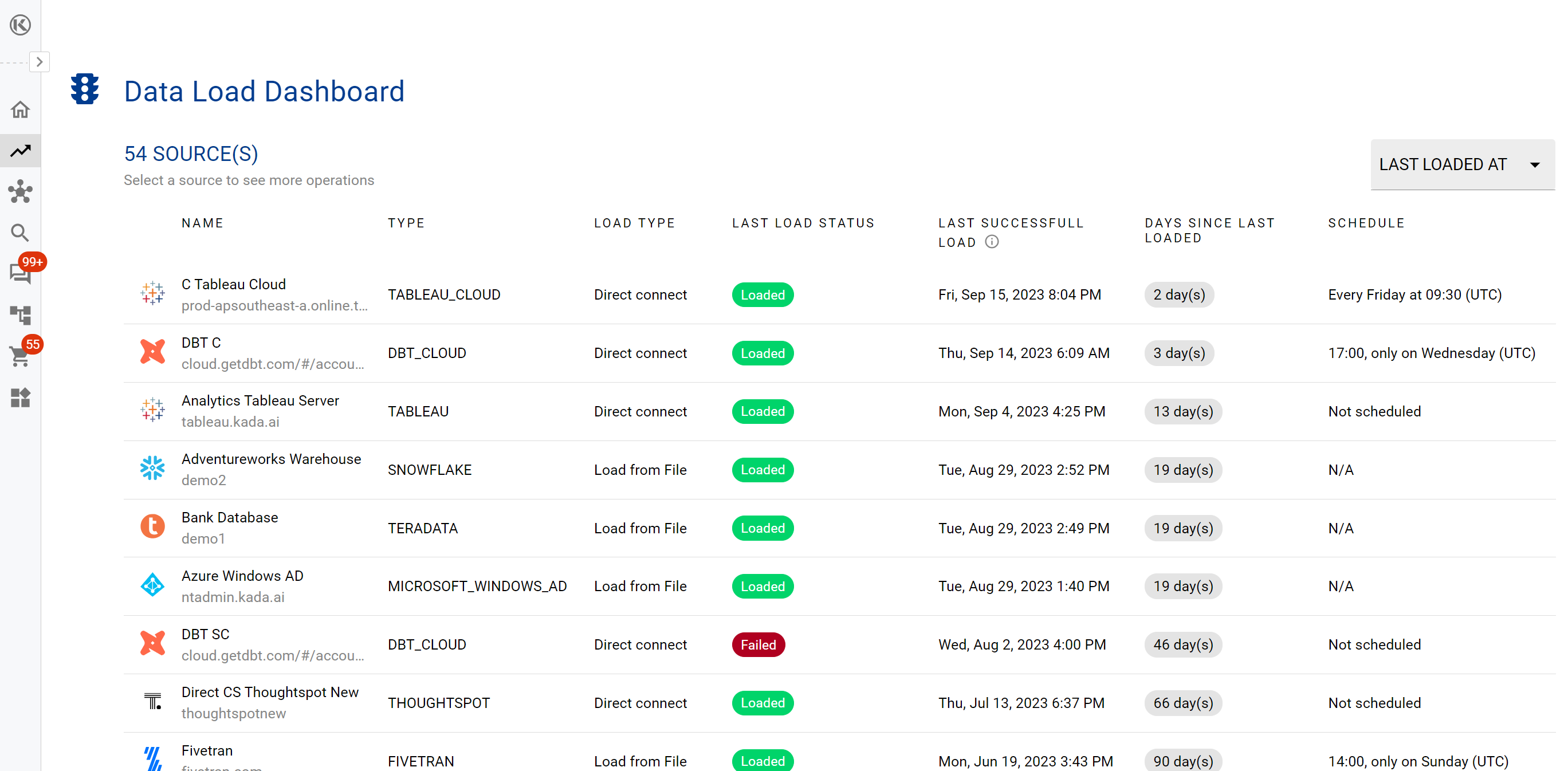 Use the Platform Load Dashboard to see the current state of source loads into K.