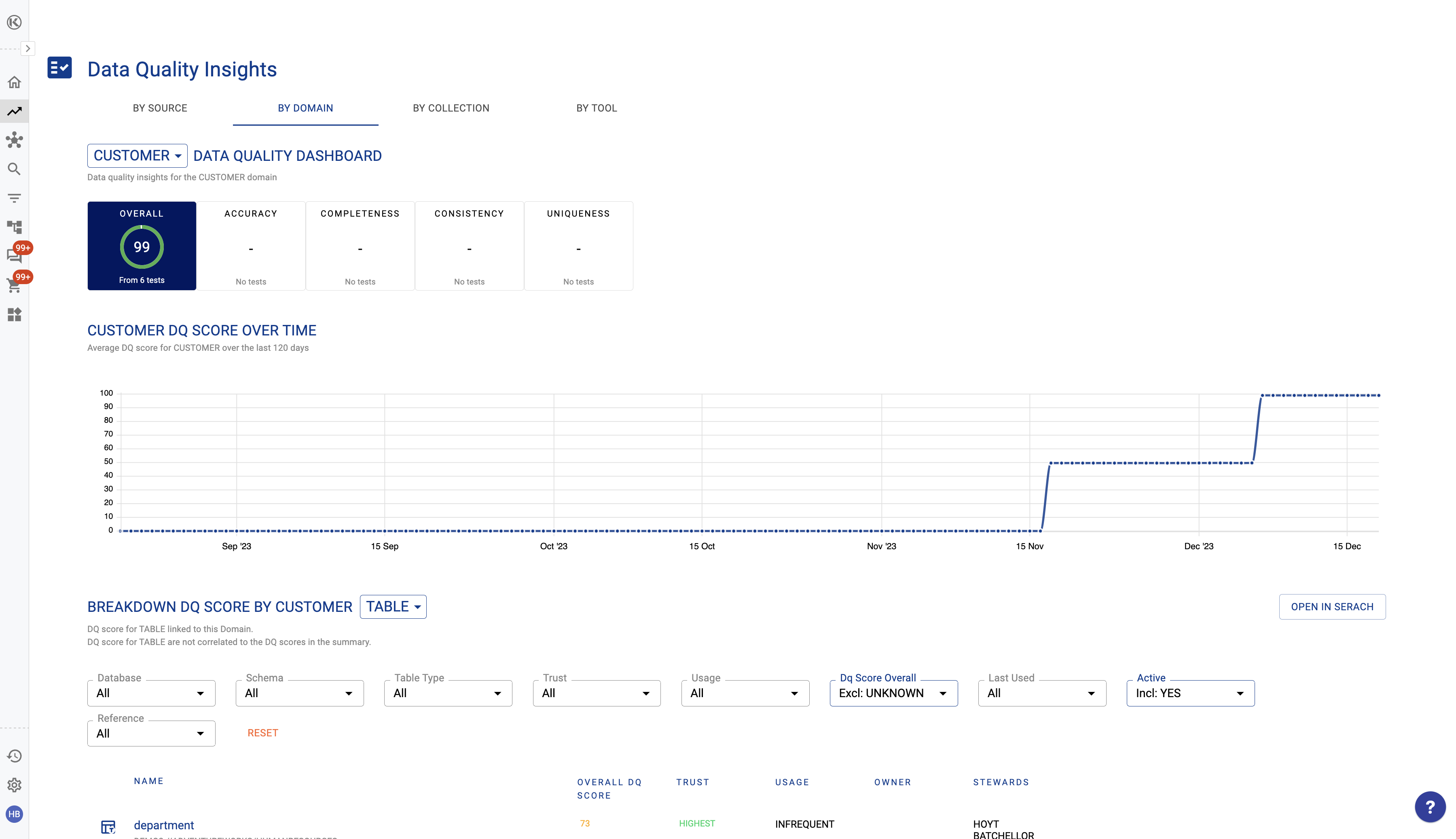 Select a specific domain, or collection to drill through to details about DQ for assets that belong to that domain or collection.