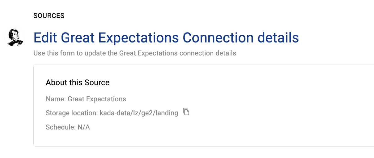 Locate your new Great Expectations source and click on the Schedule Settings (clock) icon to set the schedule