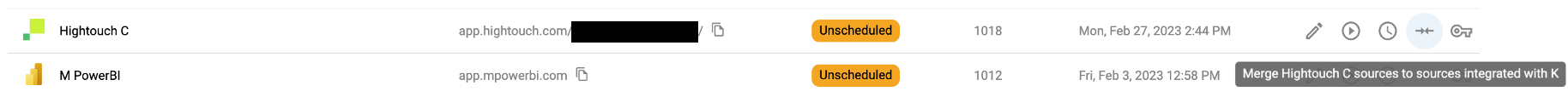 Next to the Hightouch source, click on the Merge Sources icon