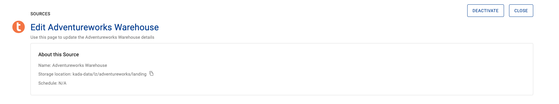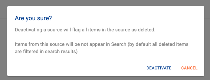 Deactivating a source may take some time as the process deactivates all of the source’s items (reports, tables etc).