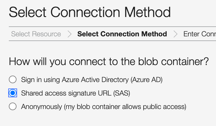 Select Shared access signature URL (SAS) and use the SAS token provided