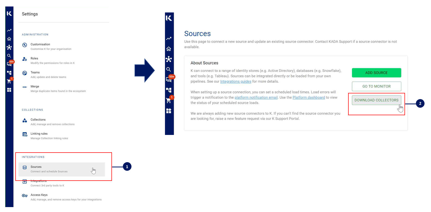 Collectors are extractors that are developed and managed by you (A customer of K).