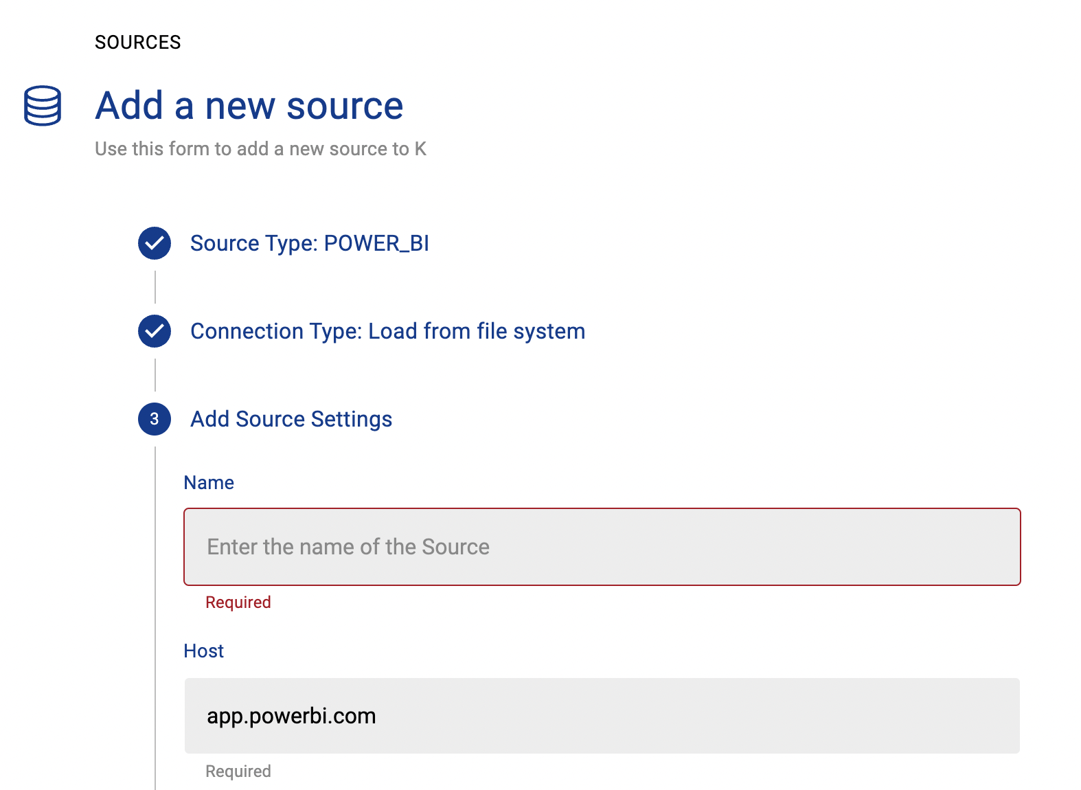 The collector requires a set of parameters to connect to and extract metadata from Power BI