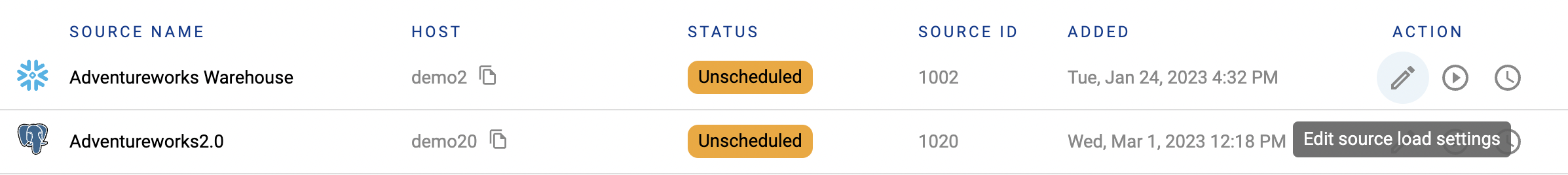 Click Edit Source Load Settings on the source you want to rename