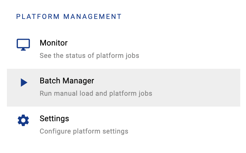 Click on Platform Settings in the sidebar and open Batch Manager