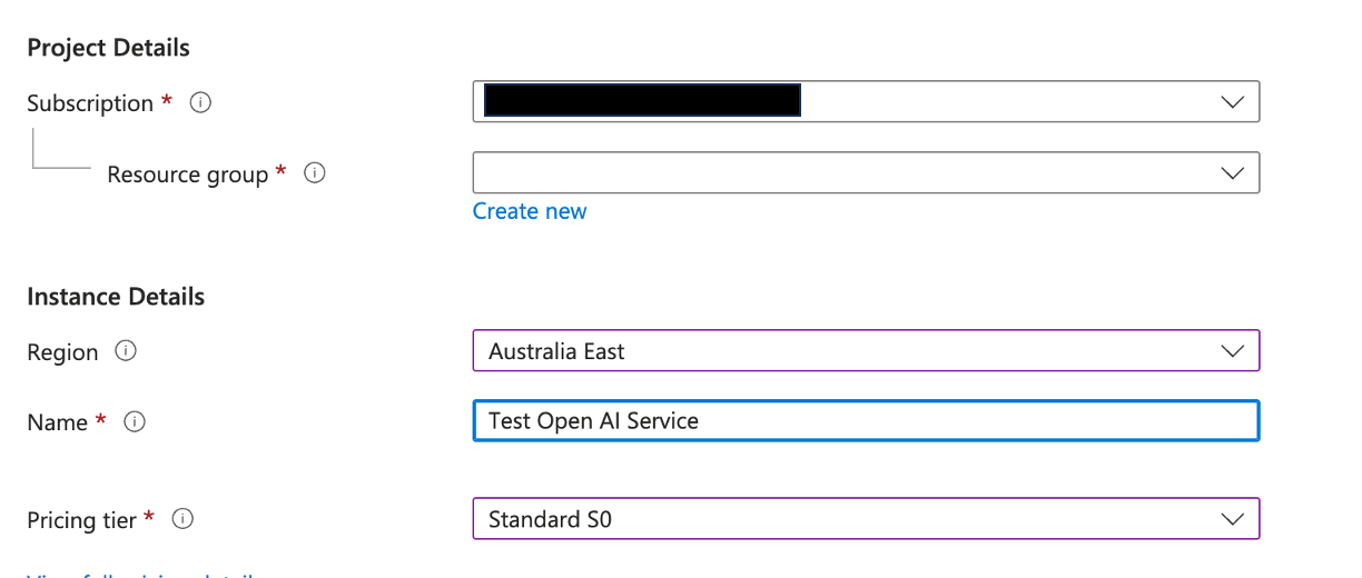 Selecting (or creating) the resource group to deploy to