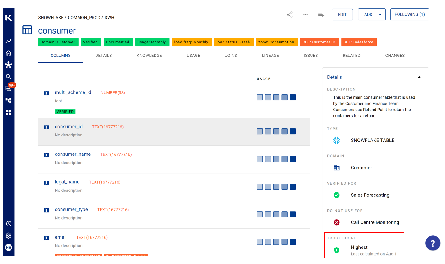 Documentation: If the data product/asset has been well documented (e.g. description, owners, and stewards, linked to collections)