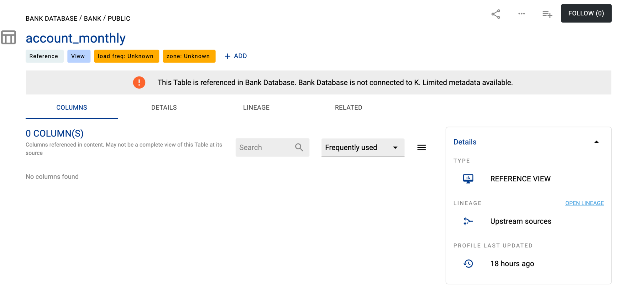 Because Reference objects belong to sources that are not onboarded into K, they have limited details available on their profile page. Editing a Reference object is not currently available.